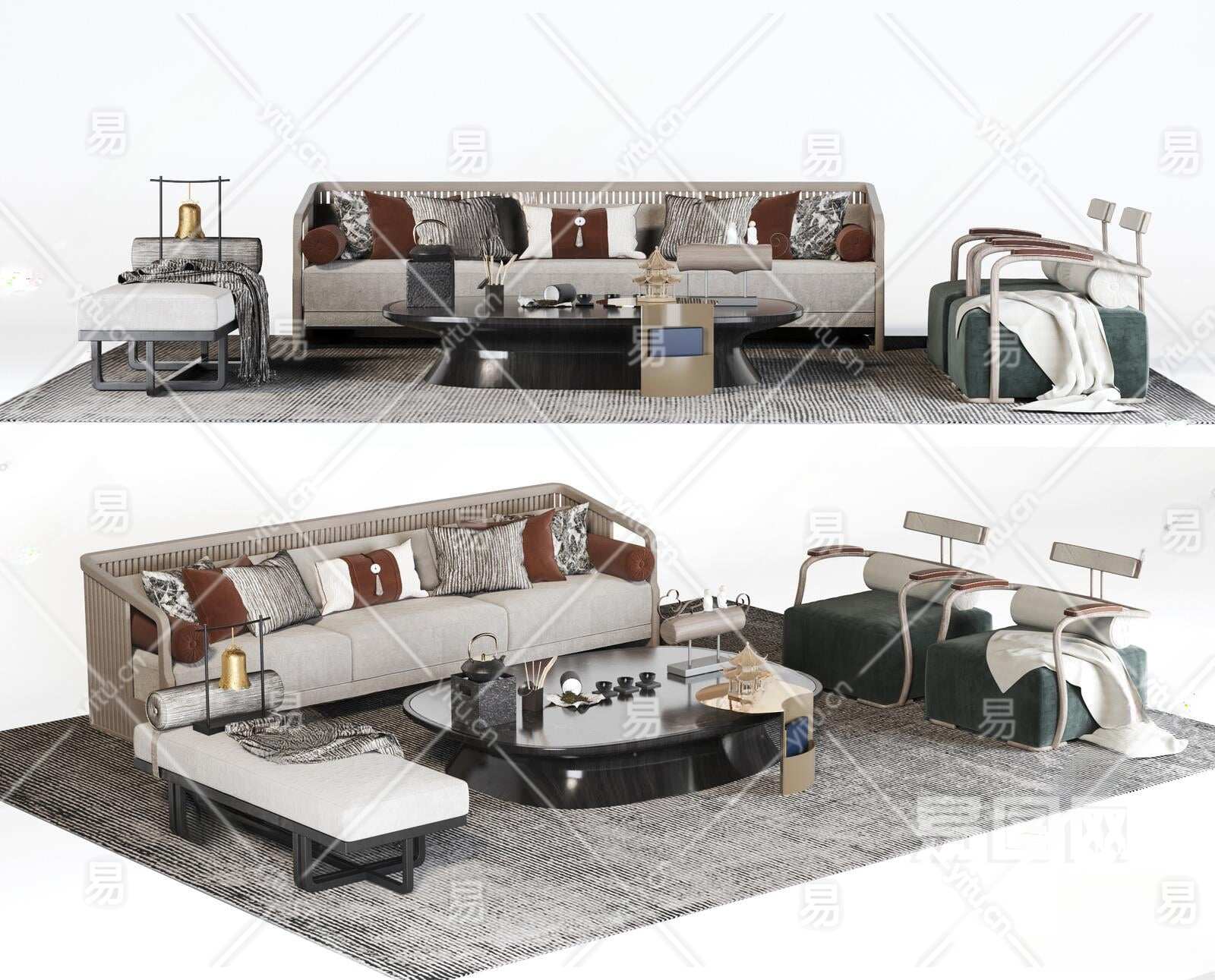 当前的位置:首页 > 3D模型 > 沙发 > 沙发茶几组合 > 新中式沙发茶几组合3D模型下载