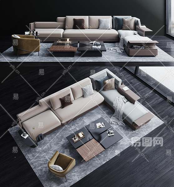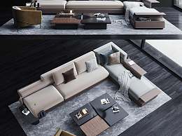现代沙发茶几组合3D模型下载