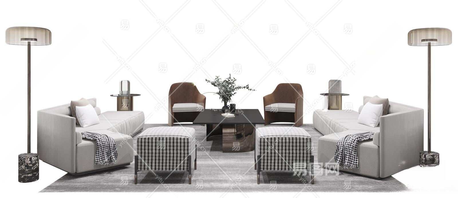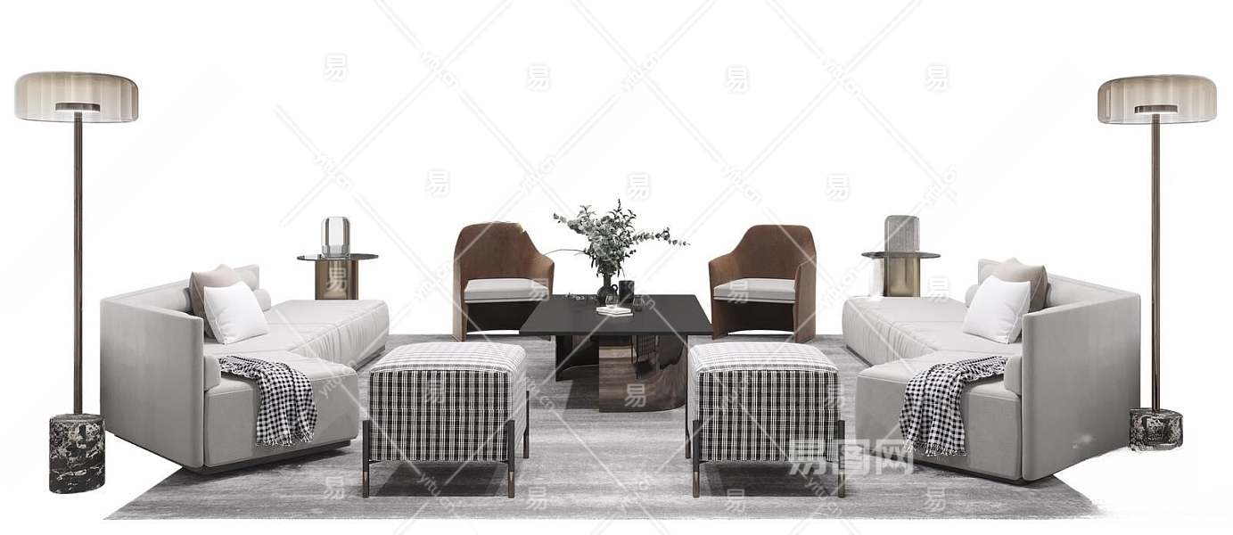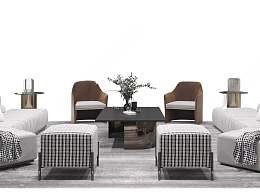 现代沙发茶几组合3D模型下载