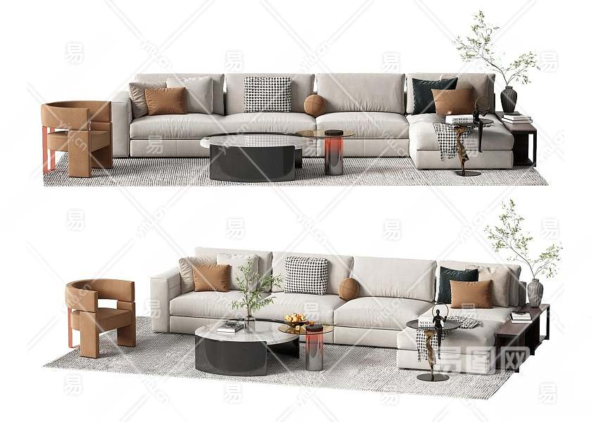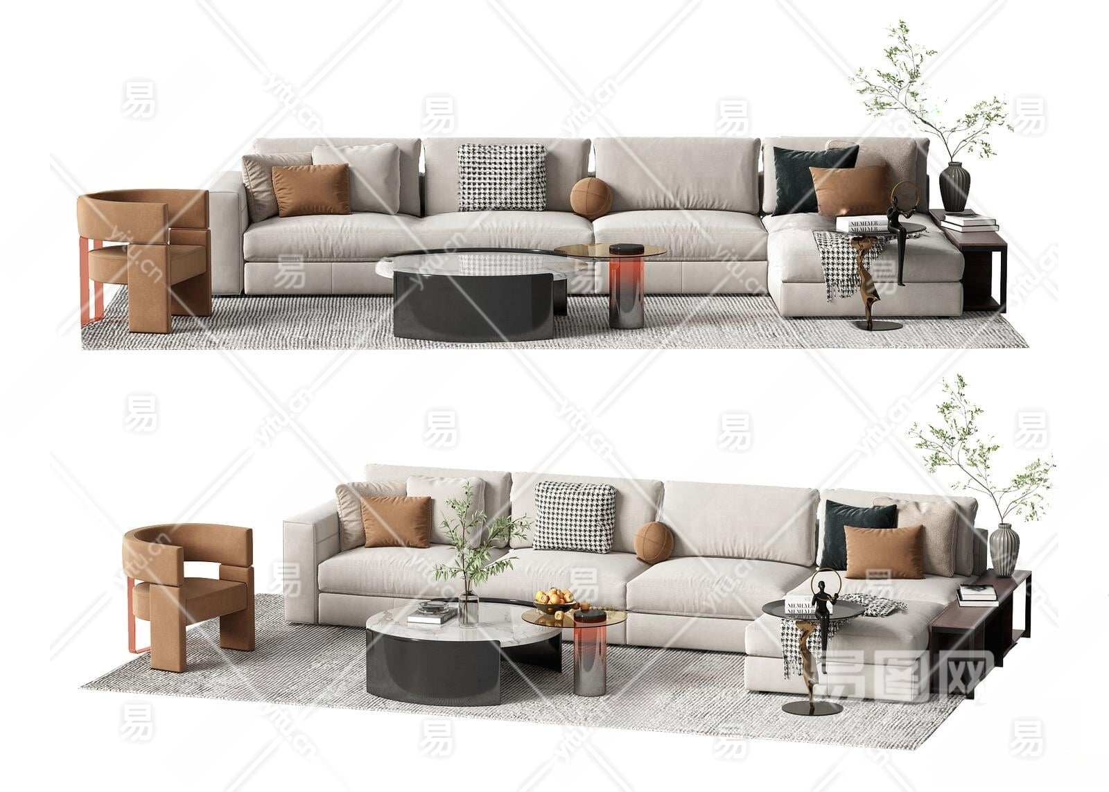现代沙发茶几组合3D模型下载