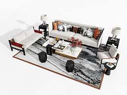 新中式沙发茶几组合3D模型下载