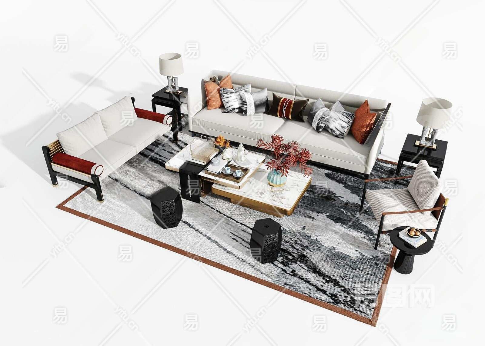当前的位置:首页 > 3D模型 > 沙发 > 沙发茶几组合 > 新中式沙发茶几组合3D模型下载