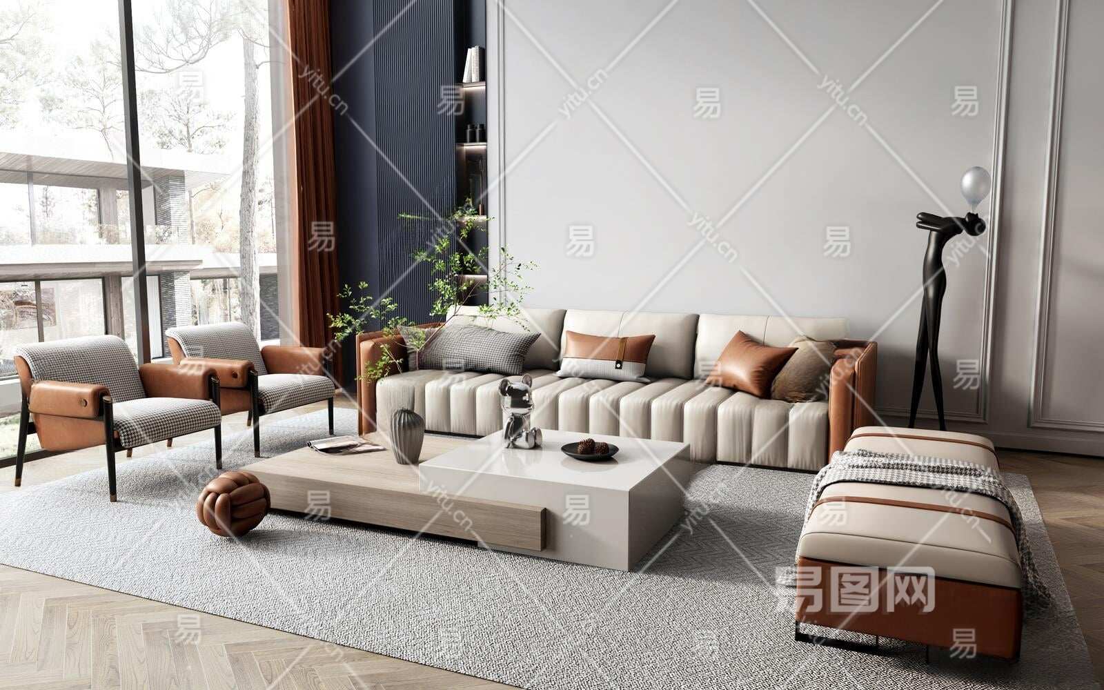 现代沙发茶几组合3D模型下载