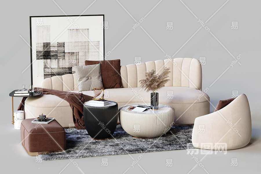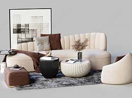 现代沙发茶几组合3D模型下载