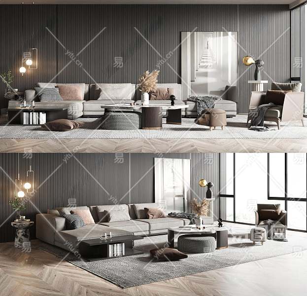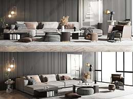 现代沙发茶几组合3D模型下载