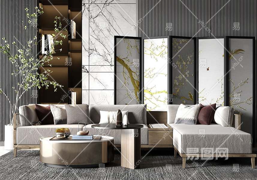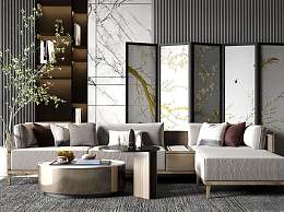 新中式沙发茶几组合3D模型下载