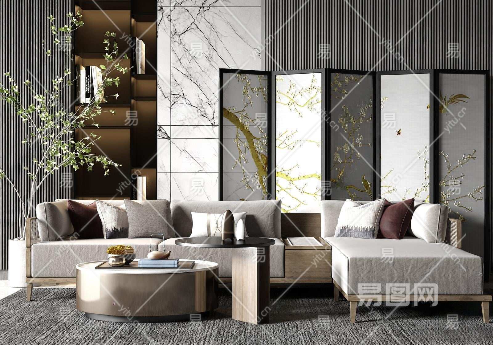 当前的位置:首页 > 3D模型 > 沙发 > 沙发茶几组合 > 新中式沙发茶几组合3D模型下载
