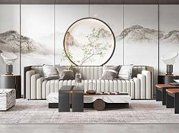 新中式沙发茶几组合3D模型下载