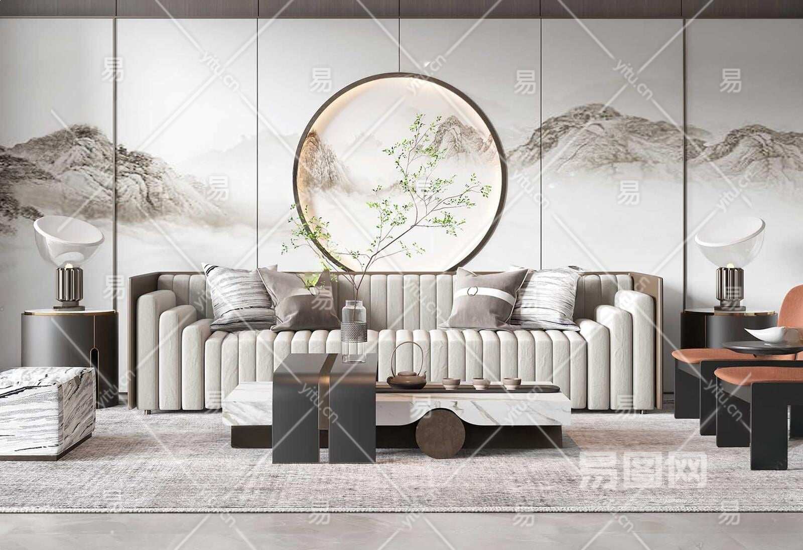 当前的位置:首页 > 3D模型 > 沙发 > 沙发茶几组合 > 新中式沙发茶几组合3D模型下载