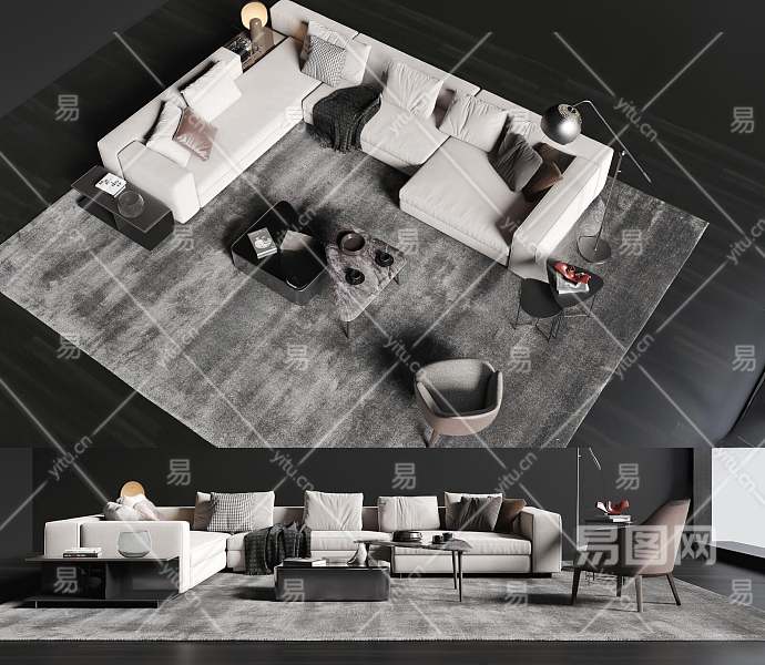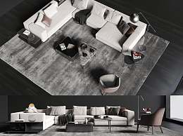 现代沙发茶几组合3D模型下载