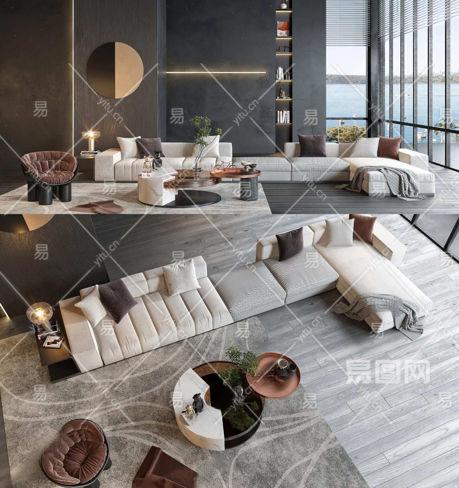 意大利MINOTTI现代沙发茶几组合3D模型下载