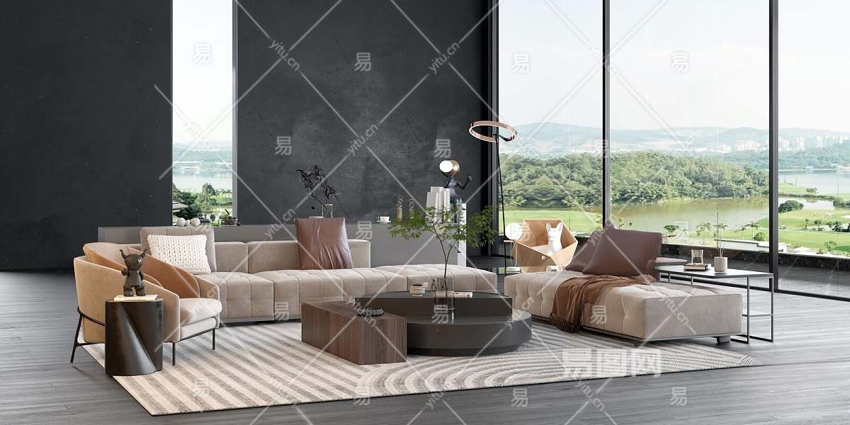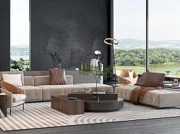 现代沙发茶几组合3D模型下载