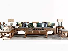 中式实木沙发茶几组合3D模型下载