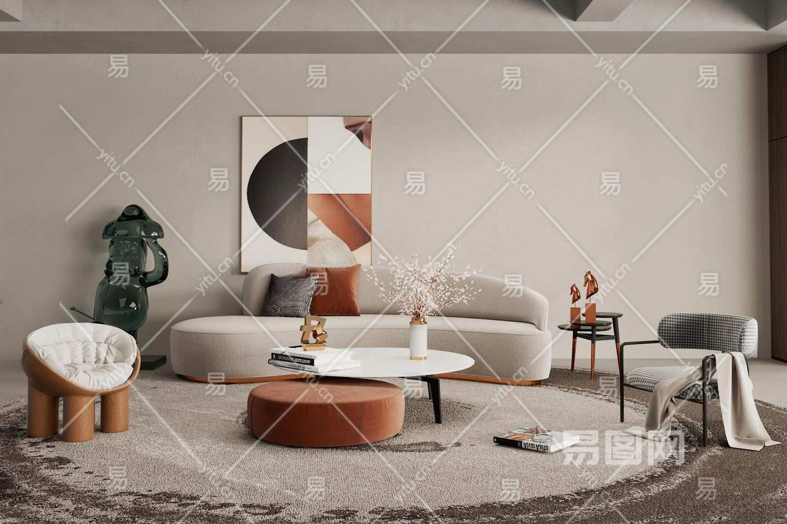 现代沙发茶几组合3D模型下载