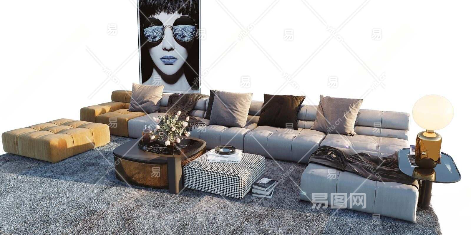 MINOTTI现代沙发茶几组合3D模型下载