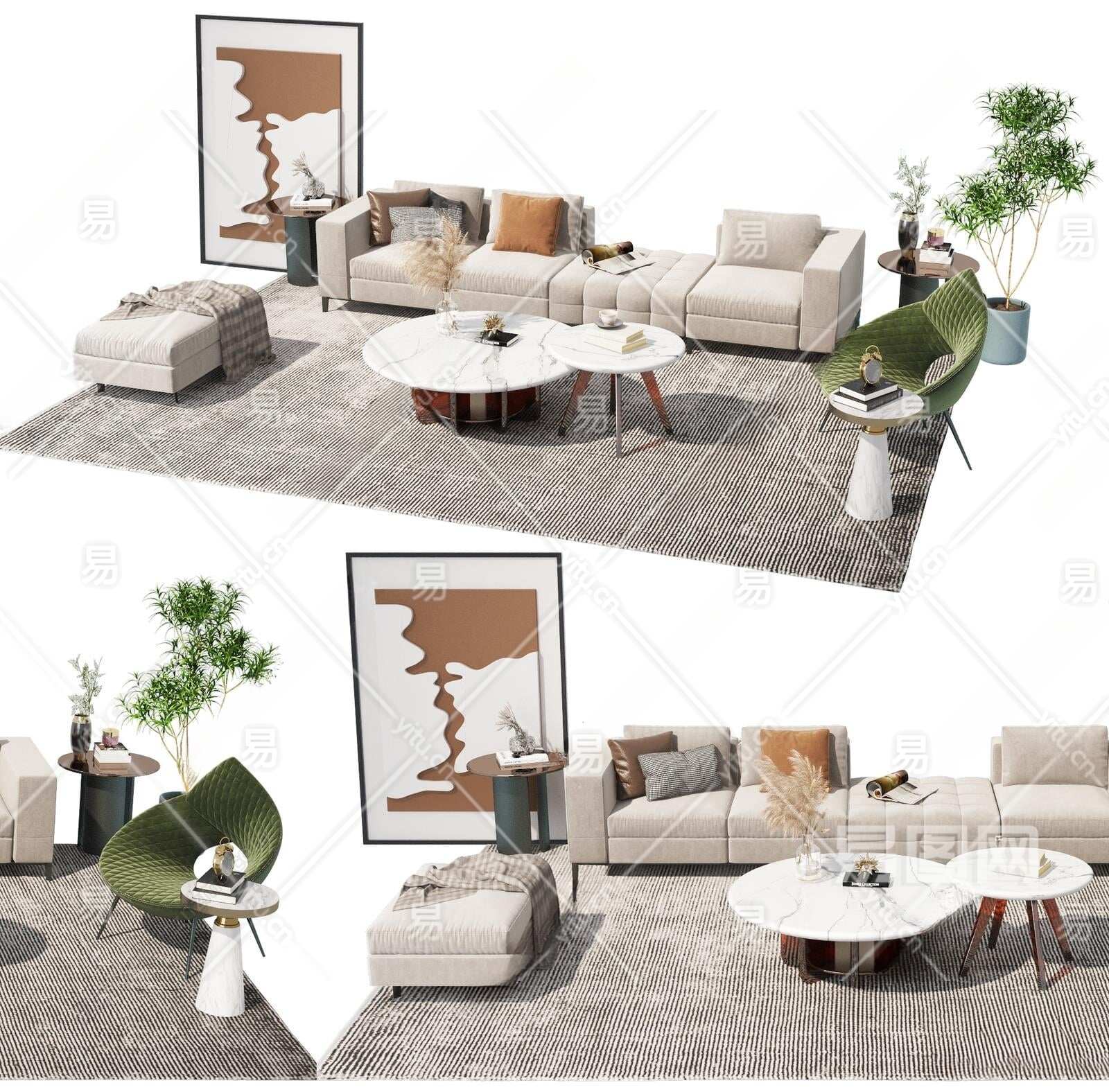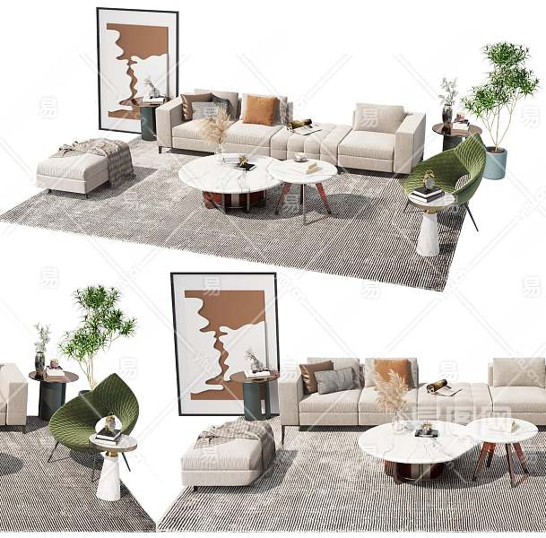 现代沙发茶几组合3D模型下载