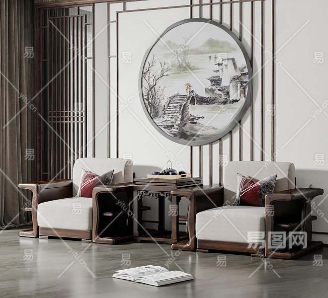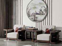 新中式单人位沙发组合3D模型下载