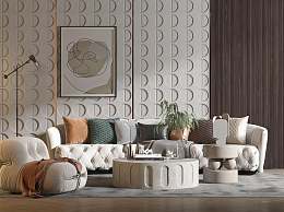 现代沙发茶几组合3D模型下载