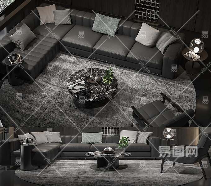 现代沙发茶几组合3D模型下载