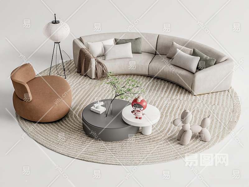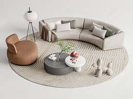现代沙发茶几组合3D模型下载