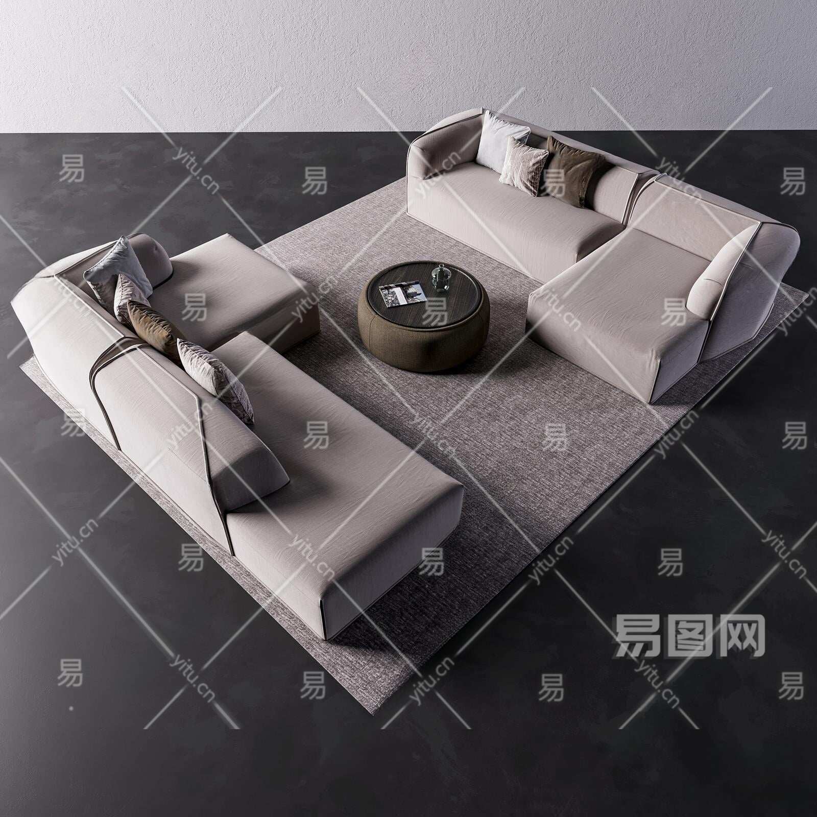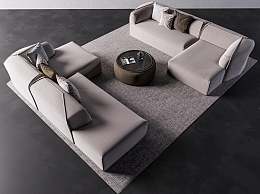 现代沙发茶几组合3D模型下载