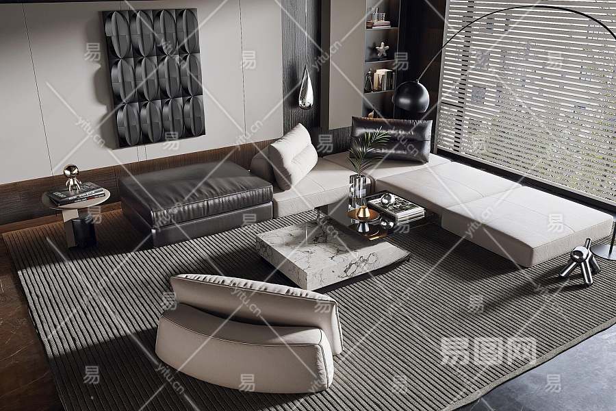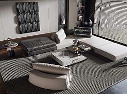 现代沙发茶几组合3D模型下载