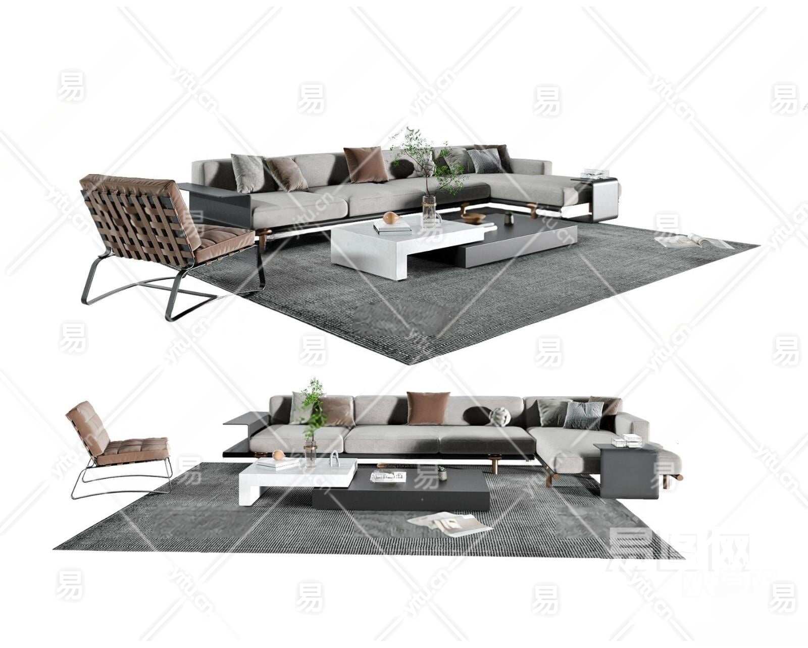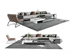现代沙发茶几组合3D模型下载