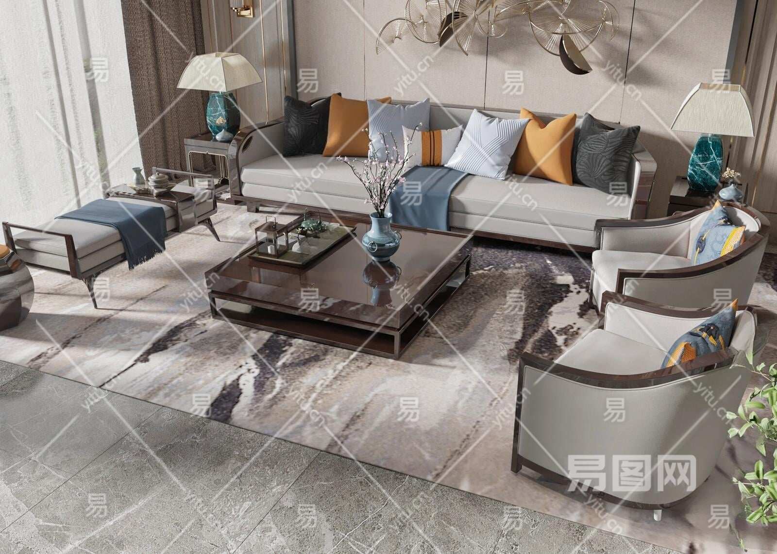 新中式沙发组合3D模型下载