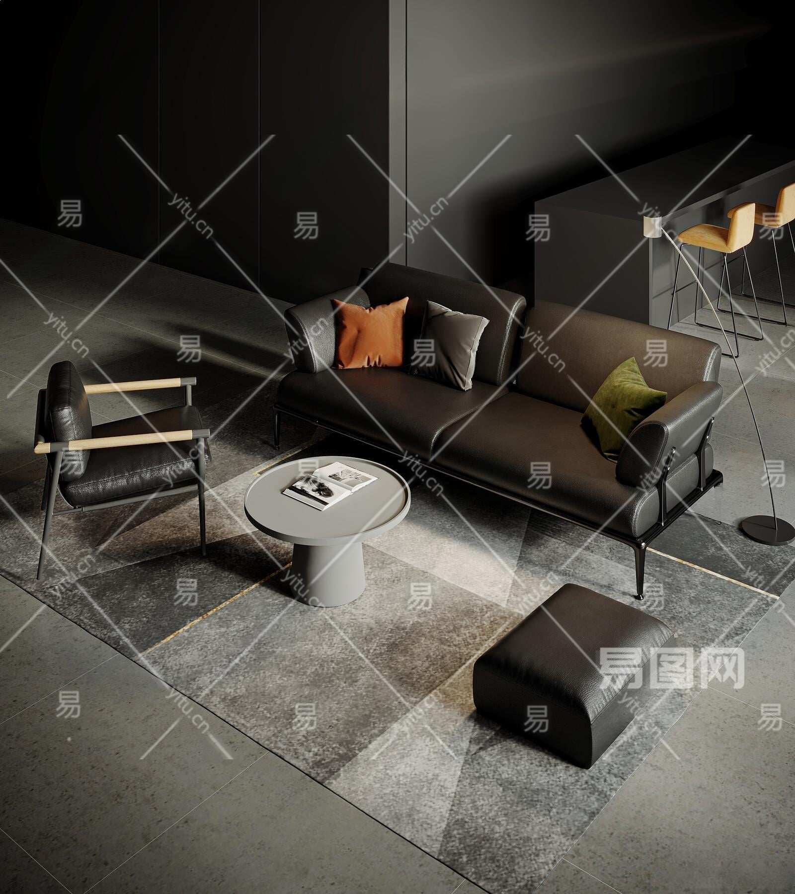 当前的位置:首页 > 3D模型 > 沙发 > 沙发茶几组合 > 现代黑色皮革沙发茶几组合3D模型下载