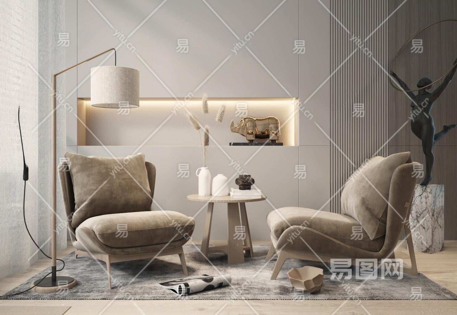 现代单人沙发3D模型下载