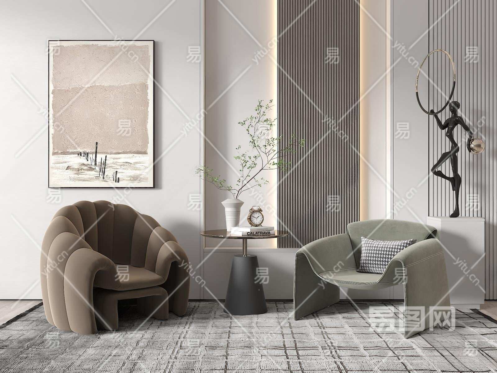 现代单人沙发3D模型下载