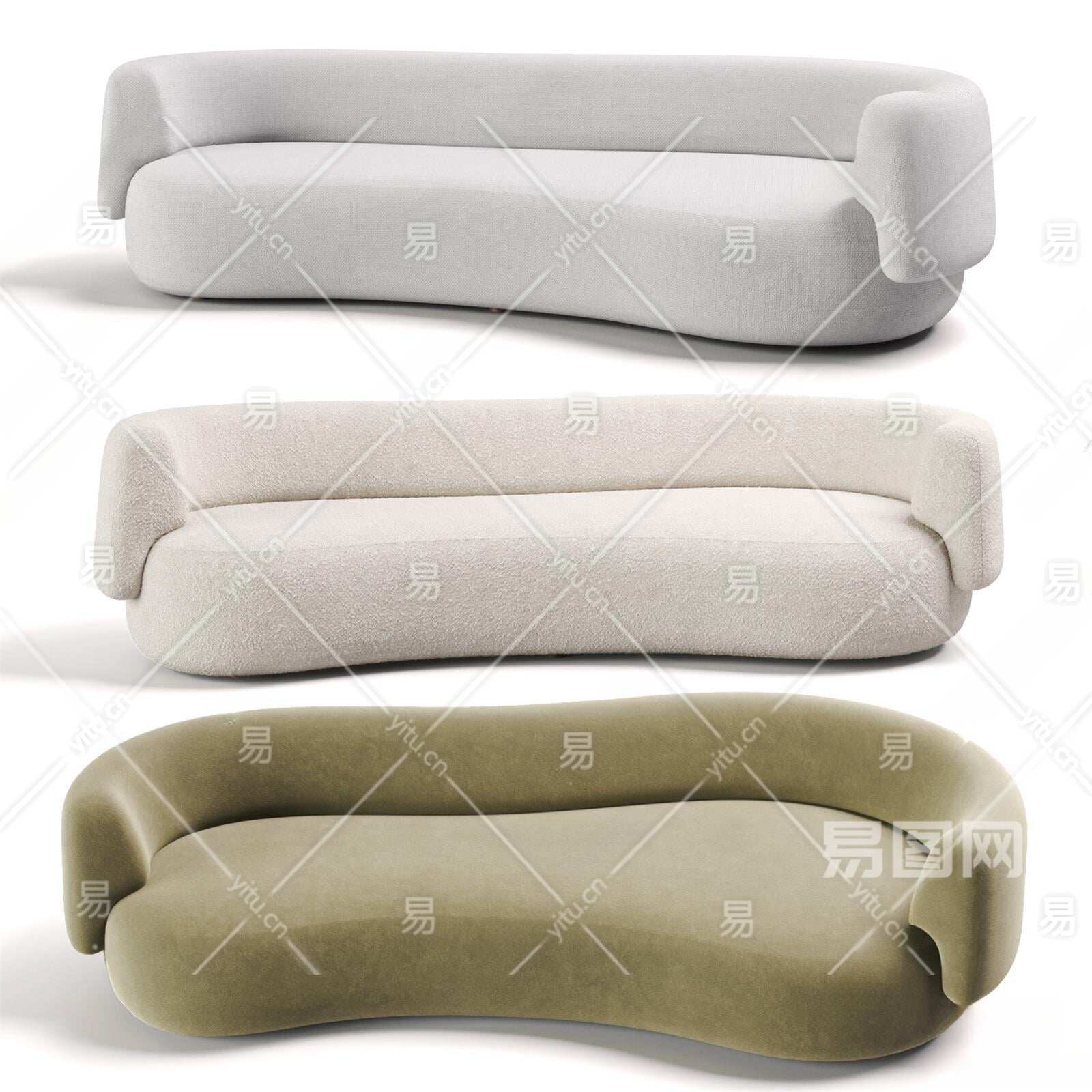 侘寂风异形沙发3D模型下载