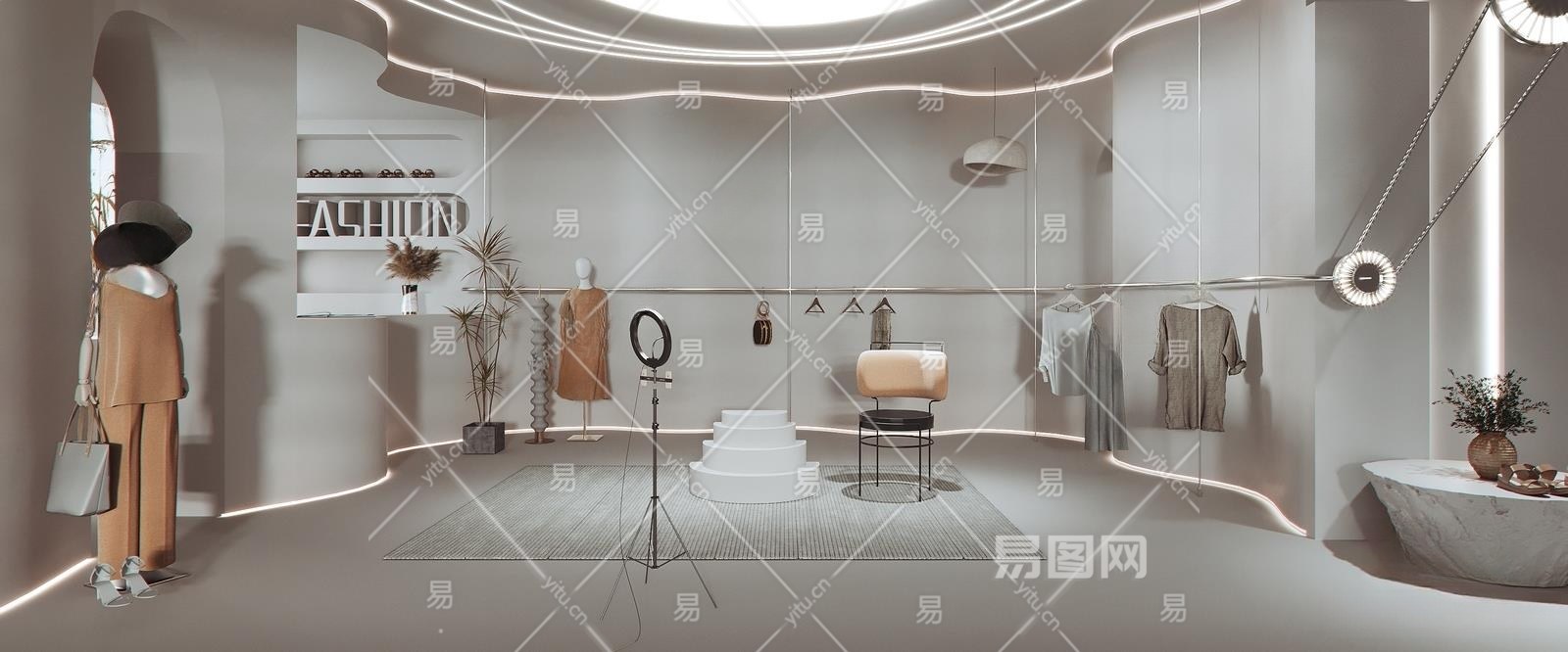 侘寂风服装店直播间3D模型下载