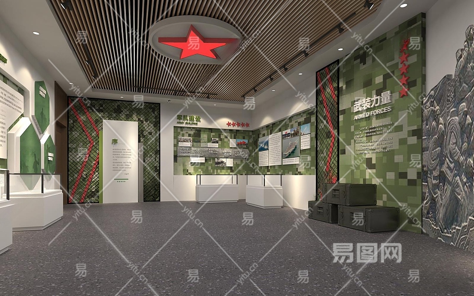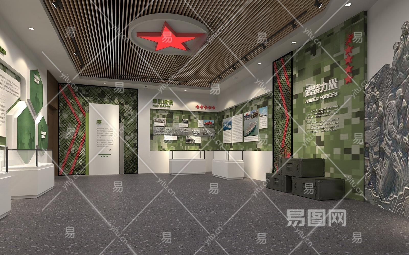 工业风格国防教育展厅3D模型下载
