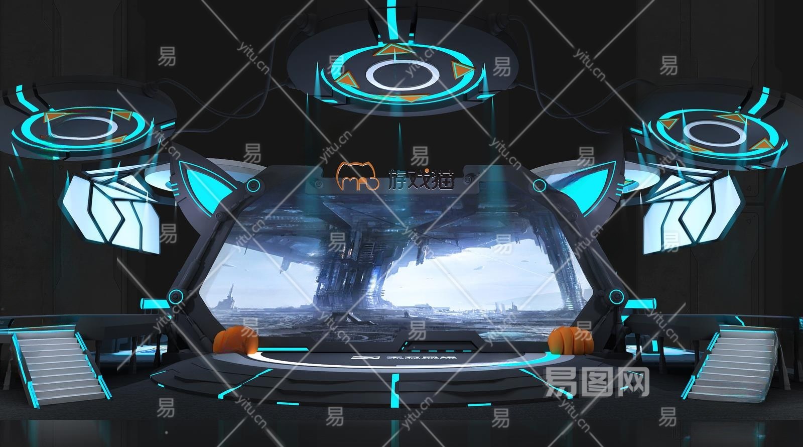 现代游戏展厅3D模型下载