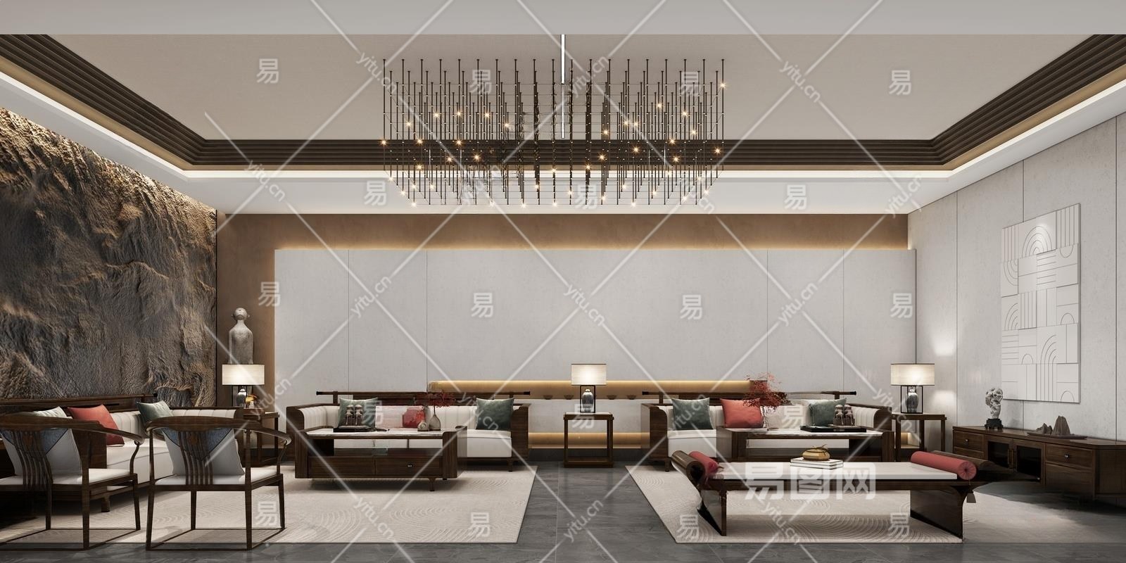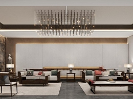 新中式家具展厅休息区3D模型下载