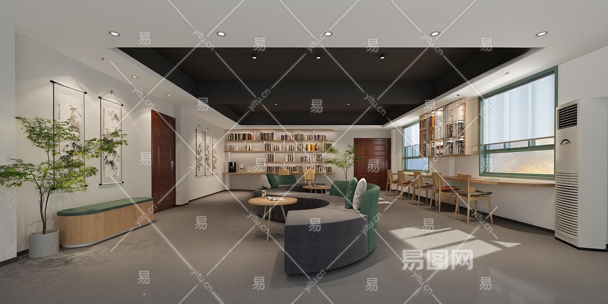 现代简约书吧3D模型下载