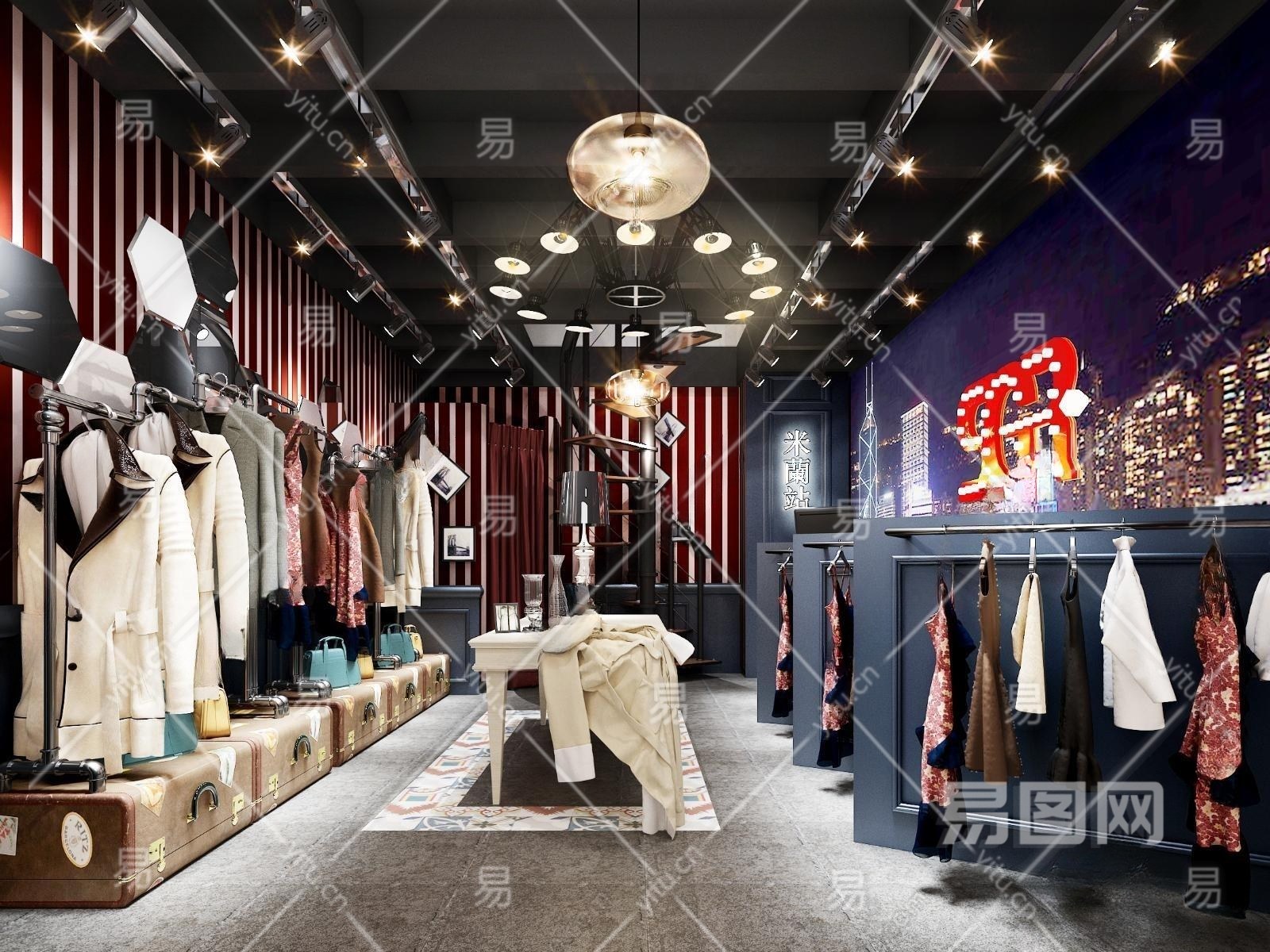 工业风服装店3D模型下载