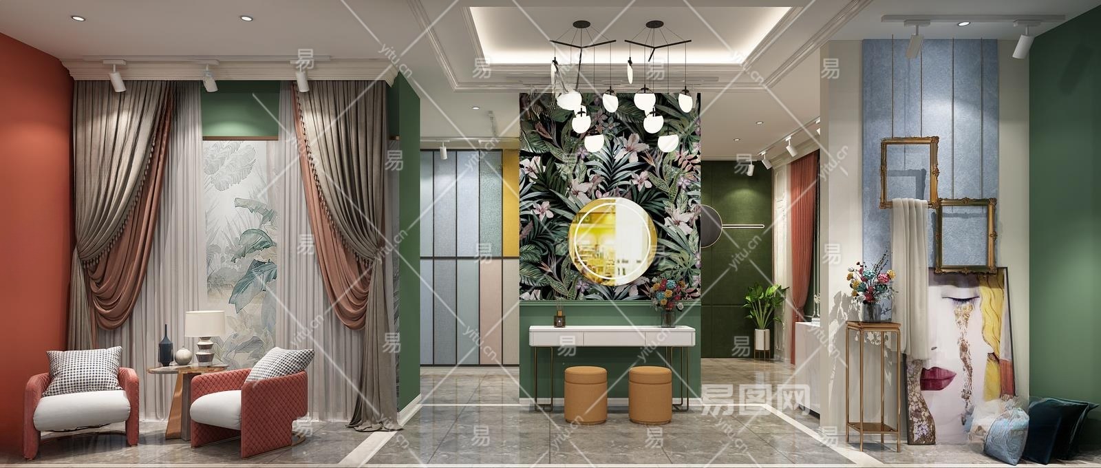 简欧窗帘店3D模型下载