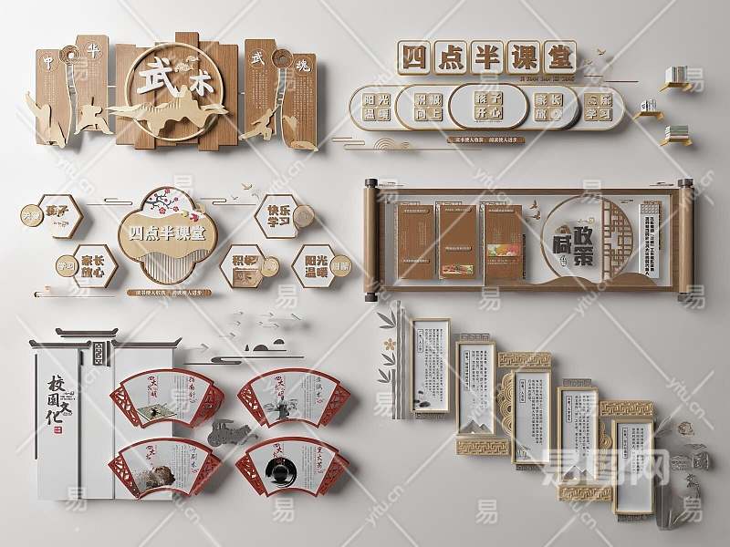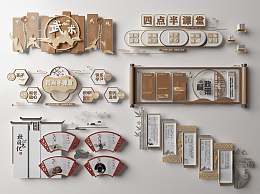 新中式学校校园文化墙3D模型下载