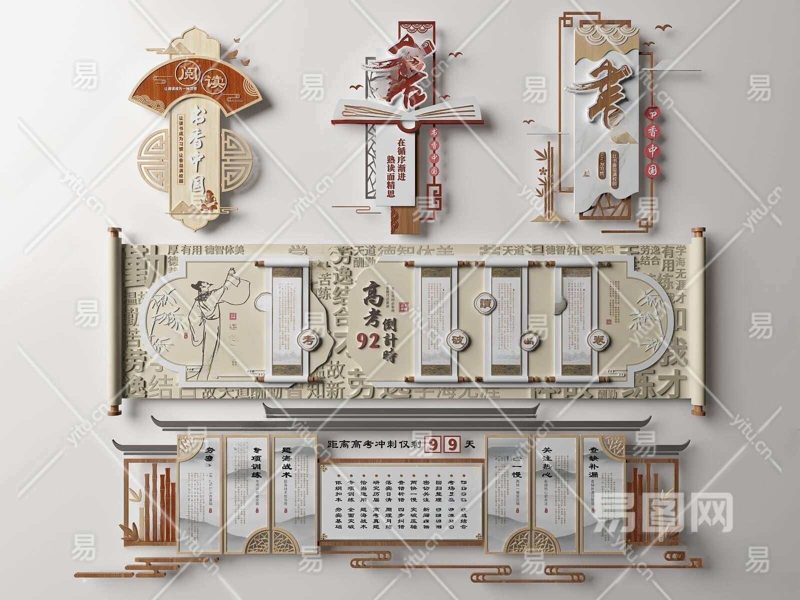 新中式学校文化墙3D模型下载
