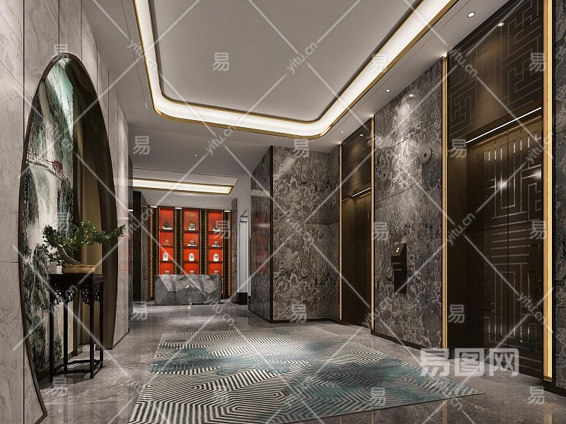 新中式电梯间3D模型下载