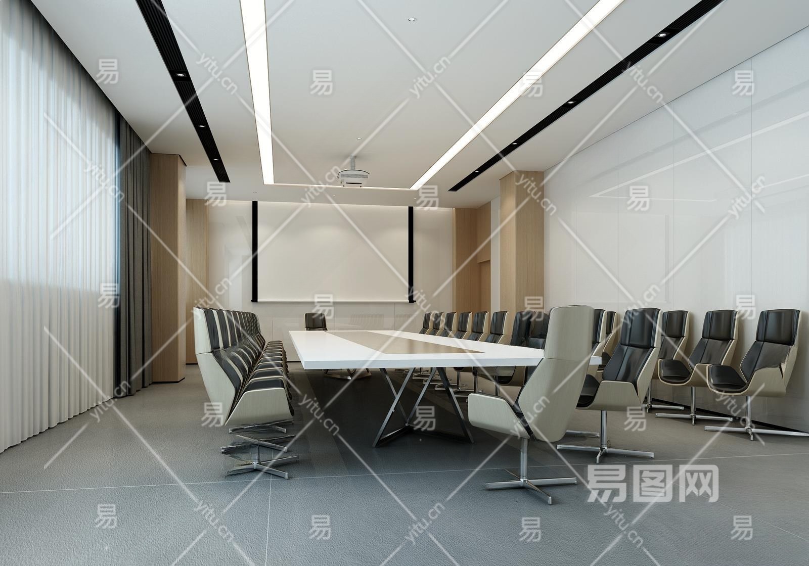 现代会议室3D模型下载