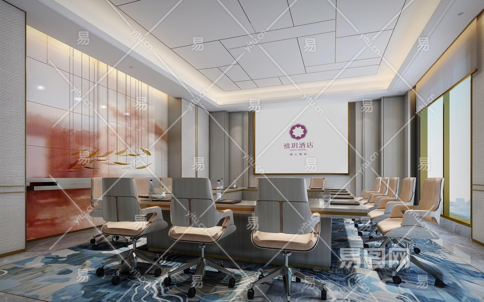 现代酒店会议室3D模型下载