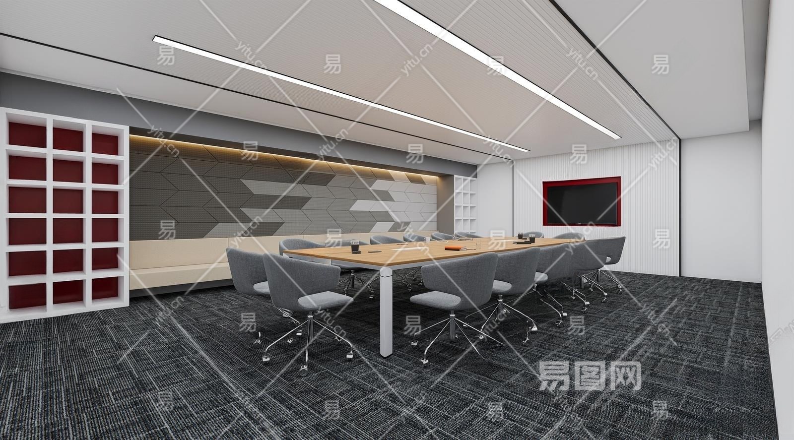 现代办公会议室3D模型下载