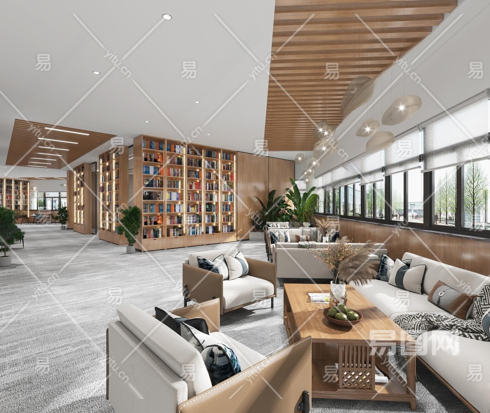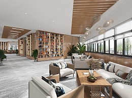 现代图书馆休息区3D模型下载