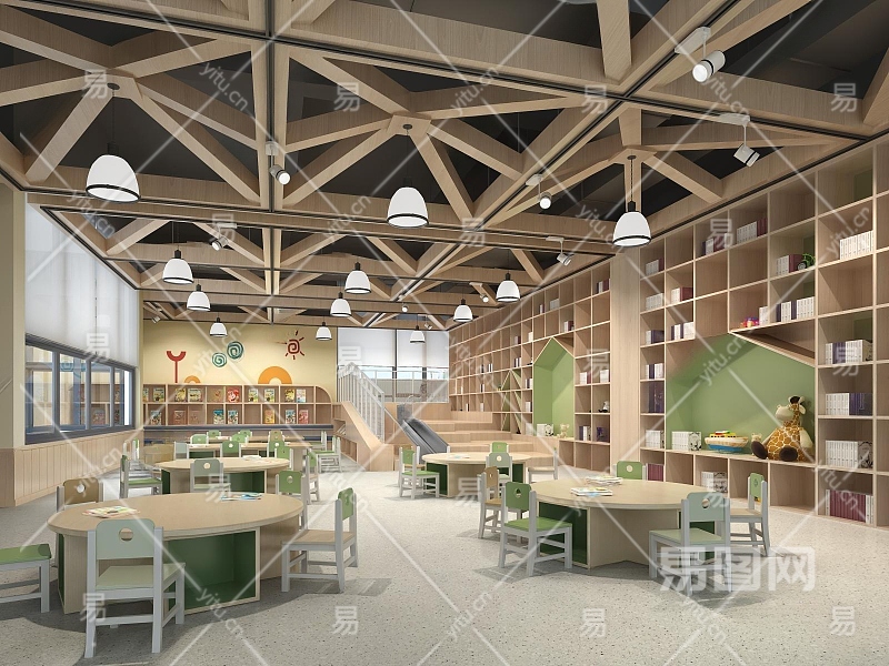 现代幼儿园图书阅览3D模型下载
