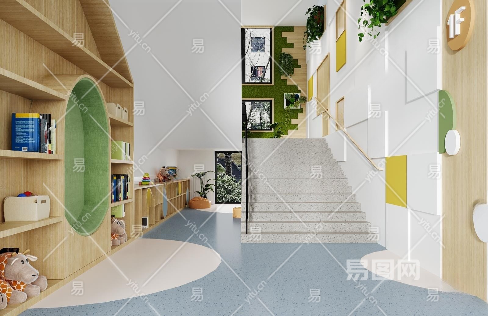 现代幼儿园楼梯间3D模型下载