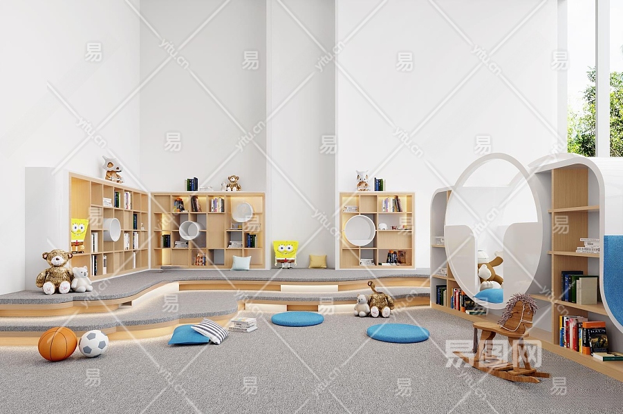 现代幼儿园阅览室3D模型下载