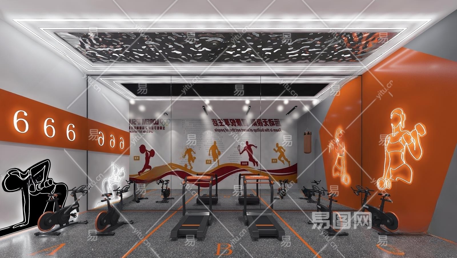 现代健身房3D模型下载
